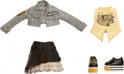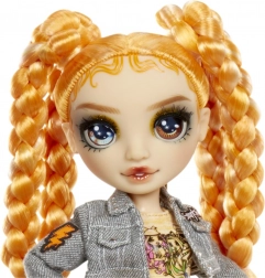 Wyrazista pomarańczowa fryzura w warkoczach, dżinsowa kurtka z naszywkami oraz platformowe buty z napisem RAINBOW czynią z Clementine gwiazdę każdej kolekcji.