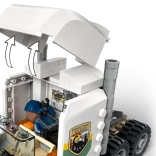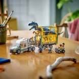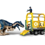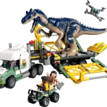 Zbuduj scenę jak z JURASSIC WORLD: potężny allozaur z ruchomymi kończynami, głową i otwieraną paszczą jest transportowany w szczegółowej klatce na przyczepie. Kabina ciężarówki mieści trzy minifigurki, do dyspozycji jest rampa załadunkowa, otwierany dach i maska oraz dźwignia do bezpiecznego zamknięcia klatki. Quad i dron rozszerzają możliwości zabawy i wspierają kreatywne opowieści.