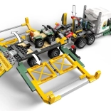 - Ciężarówka z kabiną dla 3 minifigurek, przyczepa z klatką i rampą, quad, dron