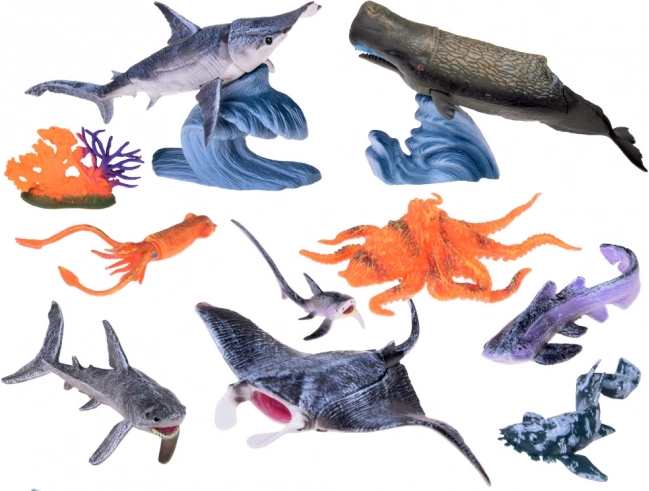 Zestaw realistycznych zwierząt morskich – figurki manta, kaszalot, kałamarnica, rekiny i inne