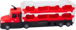 Odkryj zabawę 2w1 – duży czerwony autotransporter, który po rozłożeniu zamienia się w tor wyścigowy o długości 211 cm. W zestawie efekty świetlne i dźwiękowe, 2 samochodziki strażackie 1:64 oraz 7 znaków drogowych do kreatywnej zabawy i nauki zasad ruchu drogowego.