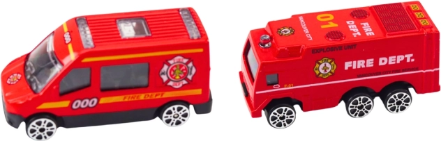 W komplecie 2 samochodziki strażackie w skali 1:64 oraz 7 znaków drogowych. Dzieci naturalnie poznają zasady ruchu i rozwijają wyobraźnię.