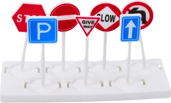 - 2 samochodziki strażackie, 7 znaków drogowych