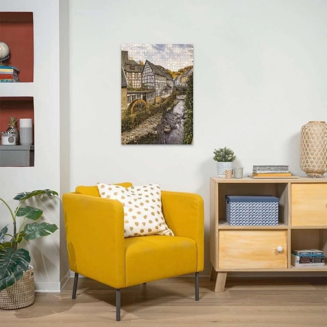 Detale półdrewnianych domów, kamienne podmurówki i koło wodne nad strumykiem tworzą harmonijną scenerię, która po ułożeniu pięknie zaprezentuje się także jako dekoracja wnętrza.