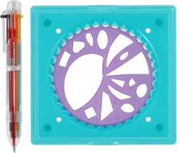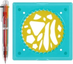 Z tym zestawem Inspiro stworzysz zachwycające spiralne wzory, mandale i unikalne geometryczne rysunki. Łącz różne kółka i powtarzaj motywy tak często, jak chcesz – efekt będzie zawsze oryginalny i kolorowy. Dzięki sześciokolorowemu długopisowi łatwo podkreślisz detale i nadasz wzorom dynamikę.
