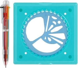 Plastik (szablony i ramka), plastik/metal (długopis)