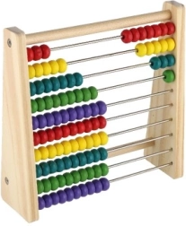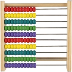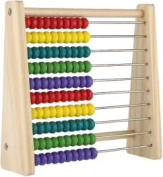 Dziesięć rzędów po dziesięć koralików pomaga naturalnie zrozumieć system dziesiętny, dodawanie i odejmowanie.