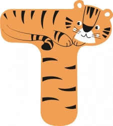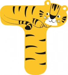 Wesołe pastelowe wykonanie z motywem tygrysa w kolorze żółtym i pomarańczowym pobudza wyobraźnię i zamienia naukę alfabetu w zabawę.