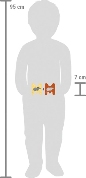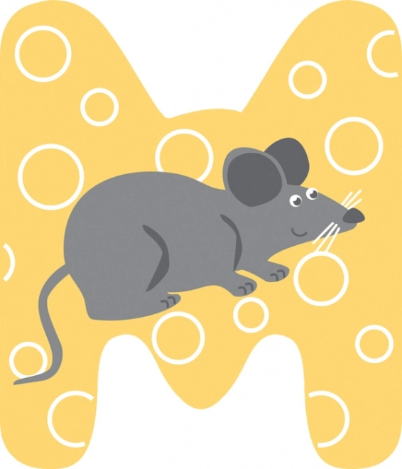 Wesoły motyw myszki i delikatne pastelowe kolory budują radosną atmosferę i wspierają motorykę małą podczas zabawy. Dwa warianty kolorystyczne pozwalają dopasować literkę do wnętrza lub innych liter z tej samej kolekcji.