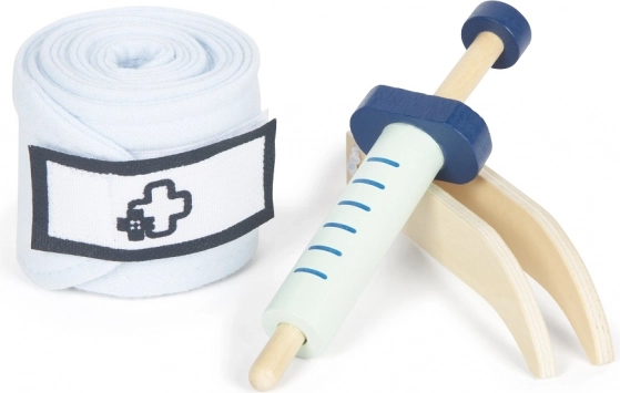 Strzykawka ma ruchomy tłok, a bandaż zapina się na rzep. Dzieci zyskują bardziej realistyczną zabawę, a jednocześnie trenują małą motorykę.
