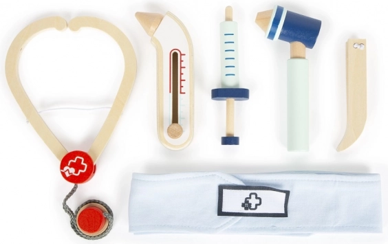Odkryj zabawną zabawę w doktora z wysokiej jakości drewnianym zestawem lekarskim dla dzieci od 2 lat. Zestaw zawiera stetoskop, strzykawkę z ruchomym tłokiem, termometr z regulowanym wskaźnikiem, otoskop z prawdziwą lupą, pęsetę oraz bandaż na rzep. Wytrzymałe wykonanie z litego drewna wspiera wyobraźnię i kreatywność podczas codziennej zabawy.
