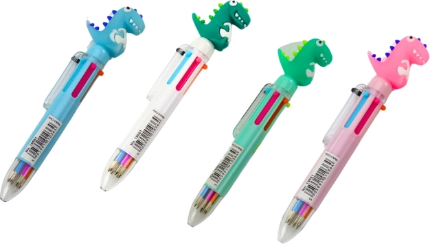 Wzbogać szkolną wyprawkę o wielokolorowy długopis z uroczym motywem dinozaura, łączący kreatywność i praktyczność. W jednej obudowie znajdziesz 6 różnych kolorów atramentu, dzięki czemu z łatwością wyróżnisz notatki, rozróżnisz zadania lub stworzysz kolorowe rysunki.