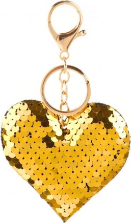Brelok w kształcie serca jest uroczym i stylowym dodatkiem, który wyróżnia się swoimi dwukolorowymi cekinami. Na powierzchni breloka znajdują się złote cekiny, które nadają mu błyszczący wygląd. Unikalną funkcją tego breloka jest to, że cekiny są dwukolorowe - przy przeciągnięciu ręką obracają się i ukazują srebrną stronę, co tworzy kontrastowy efekt i przyciąga uwagę.