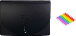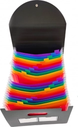 Teczka zawiera aż 24 kieszenie na dokumenty w formacie A4, przy czym każda kieszeń ma inny kolor, co ułatwia szybkie sortowanie i dostęp do dokumentów. Każda kieszeń jest wystarczająco pojemna, aby pomieścić nawet kilkaset arkuszy papieru, więc teczka idealnie nadaje się do przechowywania dużej ilości dokumentów. Kieszenie można opisać markerem, co ułatwia organizację i znalezienie potrzebnych dokumentów. Dzięki temu szybko zidentyfikujesz zawartość każdej kieszeni.