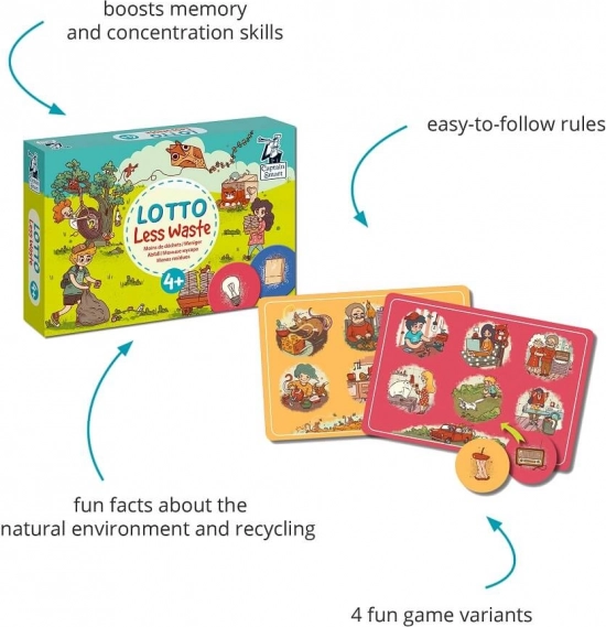 Podaruj odpadom nowe życie i naucz dzieci, co trafia do plastiku, papieru, szkła, bioodpadów i elektroodpadów. Gra Captain Smart loto – czysta planeta jest prosta i wciągająca dla 1–6 graczy od 4 lat, z uroczymi ilustracjami i czterema wariantami trudności. Zadaniem jest dopasowywanie żetonów do właściwych miejsc na planszach, a przy okazji możecie rozmawiać o obrazkach i naturalnie rozwijać słownictwo.