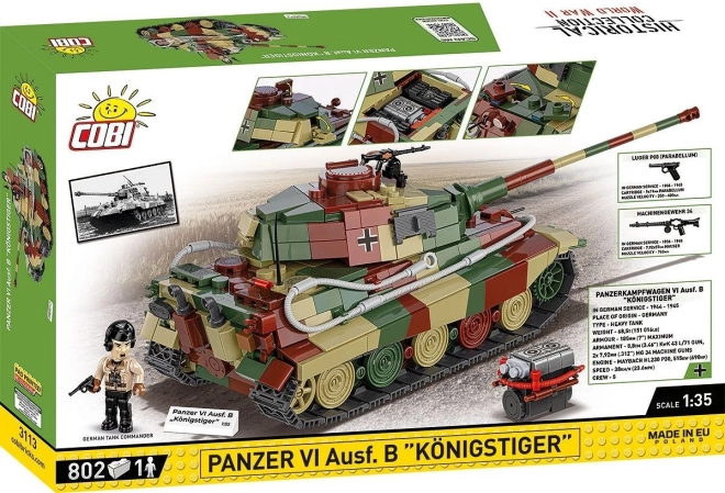 Odkryj legendę broni pancernej z realistycznym zestawem COBI z serii Historical Collection. Model Königstiger wyróżnia się wiernym kształtem, autentycznym kamuflażem i precyzyjnie wykonanymi detalami. Po złożeniu mierzy około 30 × 11,5 × 10,5 cm, dzięki czemu świetnie nadaje się zarówno do zabawy, jak i do gabloty.
