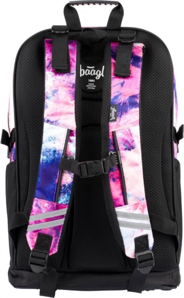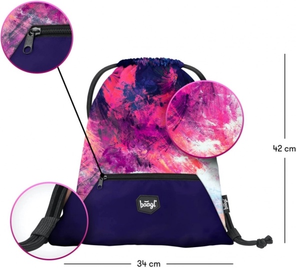 Stylowy zestaw szkolny dla dziewczynek BAAGL Abstract zawiera pojemny, trzykomorowy plecak, praktyczny worek na plecy oraz solidny piórnik. Oferuje ergonomiczne plecy, bogatą organizację, elementy odblaskowe i trwałe materiały w nowoczesnym fioletowo‑różowym designie z detalami. Idealny od 3. klasy szkoły podstawowej.