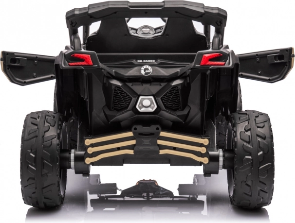 Solidny elektryczny buggy dla dzieci z zasilaniem 24 V i mocą 800 W oferuje napęd 4x4, miękkie koła EVA oraz wygodne siedzisko z pięciopunktowymi pasami. Dzięki pilotowi 2,4 GHz rodzice mają pełną kontrolę nad jazdą. Silne silniki 4× 24 V/200 W, płynny start, oświetlenie LED oraz panel multimedialny z USB/MP3 gwarantują bezpieczną i świetną zabawę na trawie, asfalcie i kostce.