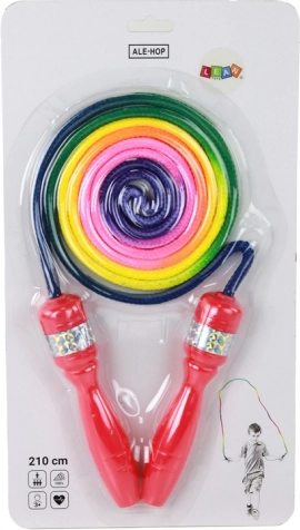 Nasza skakanka wyróżnia się nie tylko funkcjonalnością, ale również estetyką. Intensywne tęczowe kolory skakanki z czerwonymi rączkami nadają jej radosny charakter, a jednocześnie tworzą atrakcyjny wygląd, który przyciąga uwagę najmłodszych.