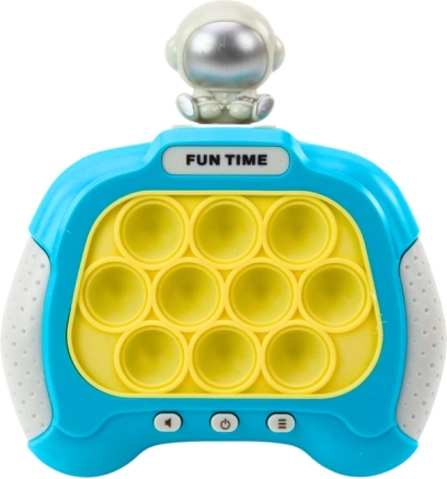 Zabawkowa interaktywna gra Pop It z motywem kosmonauty oferuje efekty świetlne i dźwięki, które wciągają dzieci do zabawy i wspierają ich refleks oraz koordynację. Zadaniem jest jak najszybsze naciskanie podświetlonych bąbelków – świetne połączenie zabawy i nauki dla dzieci od 3 lat.