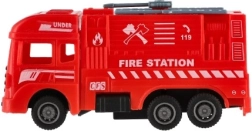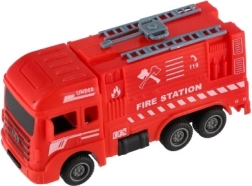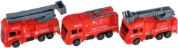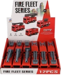 plastikowe samochody strażackie 11 cm na napęd typu pull-back, 4 rodzaje, pudełko 12 szt.