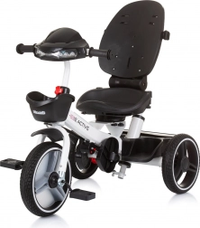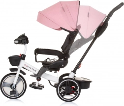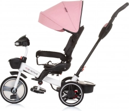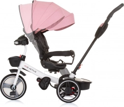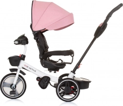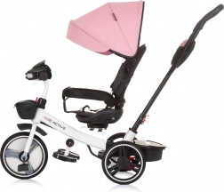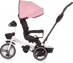 Ten uniwersalny trójkołowy rowerek Chipolino Be Active 2w1 Pink Linen rośnie razem z dzieckiem: najpierw wygodnie prowadzisz go rączką dla rodzica, później dziecko przechodzi do samodzielnego pedałowania i kierowania. O komfort dba miękka tapicerka, regulowane podnóżki oraz składany daszek z osłoną przeciwsłoneczną, który chroni przed pogodą.