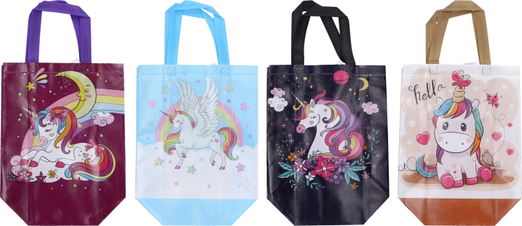Wybierz spośród 4 różnych wzorów z motywami dla dzieci, które przyciągają wzrok od pierwszego spojrzenia. Dzięki solidnym uchwytom torbę wygodnie się przenosi i stanowi estetyczną alternatywę dla papierowych opakowań.