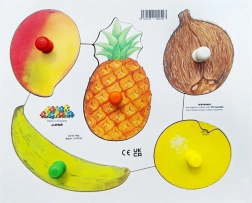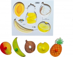 - Składanie motywów owoców takich jak mango, ananas, cytryna, kokos i babka pokazuje dzieciom ich prawdziwy wygląd pod skórką.