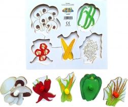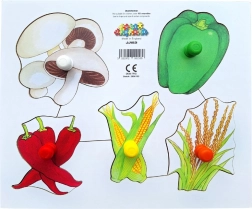 Puzzle zawierają kolorowe ilustracje warzyw, które pomogą dzieciom szybciej rozpoznać ich kształty i kolory.