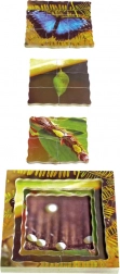 Odkryj piękno natury i jej przemiany poprzez tę unikalną warstwową układankę. Z 18 elementami i 1 podstawą z ramką, te puzzle są idealne dla dzieci, które chcą zrozumieć cykl życia motyla: