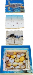 Doświadcz wyjątkowej zabawy podczas układania puzzli, które przedstawiają realne etapy rozwoju żółwia. Każda warstwa zawiera prawdziwe fotografie z różnych etapów cyklu – od jaj aż po dorosłego żółwia.