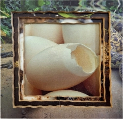 Zestaw zawiera cztery różne sceny skupione na życiu krokodyla, w tym otwartą paszczę i jaja.