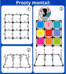 - Kolorowa siatka 3×3 z ponumerowanymi polami