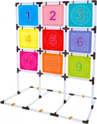 Ten kompletny zestaw do rzucania dysków do tarczy zapewnia aktywną zabawę dla jednego lub wielu graczy. Stabilna rama z siatką dziewięciu kolorowych, ponumerowanych pól wspiera naukę cyfr, rywalizację i ducha zespołowego. Gra rozwija motorykę małą i dużą, ocenę odległości oraz celność rzutu.