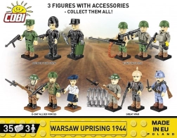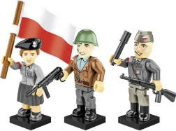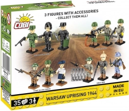 Ten zestaw zawiera trzy unikatowe figurki, które oddają bohaterów Powstania Warszawskiego z 1944 roku. Każda figurka ma nowy, atrakcyjny nadruk munduru i twarzy, co zwiększa autentyczność. Figurki są umieszczone na podstawkach dla łatwego eksponowania, a do każdej dołączono kultowe akcesoria, takie jak pistolet maszynowy MP 40, granat rurkowy czy karabin Mauser. Te figurki są doskonałym uzupełnieniem do budowy scen i dioram z klocków konstrukcyjnych.