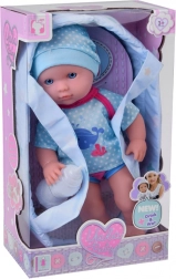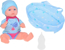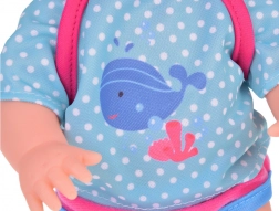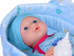 Ten zestaw zawiera wszystko, czego mali rodzice potrzebują do opieki nad swoimi lalkami – lalkę z realistycznymi rysami, nosidełko do łatwego przenoszenia oraz butelkę do karmienia. Lalka ma niebieskie oczy i jest ubrana w niebieski strój z motywem wieloryba, co dodaje zabawie w opiekę nad dzieckiem autentyczności. Po napiciu się z butelki lalka potrafi „siusiać”, dzięki czemu jest nie tylko zabawką, ale i świetnym narzędziem do nauki dla małych dzieci.