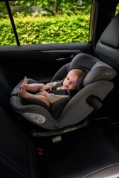 Możliwość obracania o 360° umożliwia wygodny dostęp do dziecka, niezależnie od kierunku siedzenia. To ułatwia umieszczanie dziecka w foteliku i jego wyjmowanie.