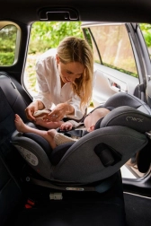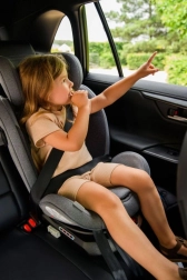 Unikalną funkcjonalnością fotelika jest obrotowa baza, umożliwiająca łatwe ustawienie przeciwnie do kierunku jazdy (RWF) i zgodnie z kierunkiem jazdy (FWF). Fotelik jest wyposażony w system ISOFIX z wskaźnikiem poprawnego montażu oraz pas Tether dla jeszcze większego bezpieczeństwa.