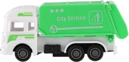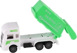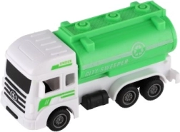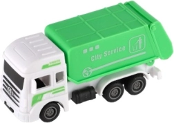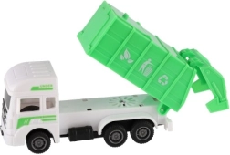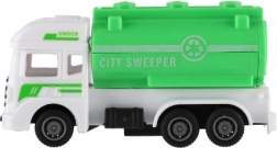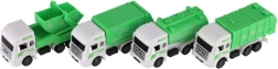 Zawiera śmieciarkę, cysternę, zamiatarkę uliczną i wywrotkę. Dzieci mogą zmieniać role podczas zabawy.