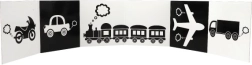 Leporello oferuje stymulację wzrokową za pomocą kontrastowych kształtów i ilustracji środków transportu, co wspiera naukę od najmłodszych lat.