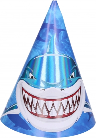 Ożyw każdą imprezę stylowymi imprezowymi czapeczkami z rekinem o wysokości 15 cm. W opakowaniu znajdziesz 6 szt. czapeczek, idealnych na dziecięce urodziny, tematyczne rekinowe party oraz letnie przyjęcia.