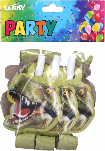 Gwizdki imprezowe DINO – 6 szt.: zabawne gwizdki z motywem dinozaurów na dziecięce przyjęcia i urodziny. Łatwe w użyciu i świetna atmosfera.