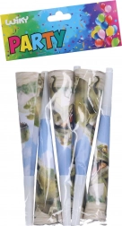 Stwórz radosną atmosferę na każdej imprezie dzięki trąbkom z motywem dinozaurów. Dzięki długości 20 cm są łatwe w użyciu, lekkie i bezpieczne dla dzieci oraz dorosłych. Doskonale uzupełnią dekoracje i zapewnią dużo radości oraz efekty dźwiękowe.
