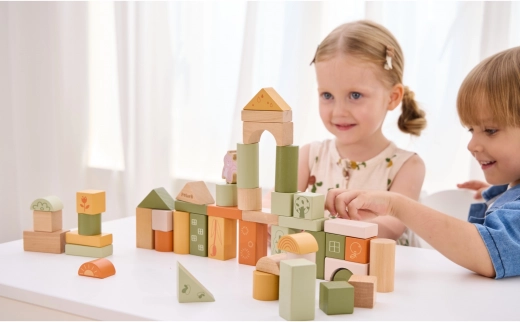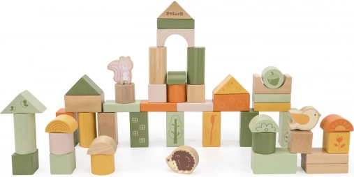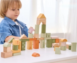 50 starannie wykonanych drewnianych klocków w delikatnych odcieniach z motywami zwierzątek pobudza kreatywną zabawę oraz podstawy STEM. Gładka powierzchnia i wysokiej jakości wykonanie zapewniają trwałość i bezpieczną zabawę.