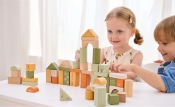 Różnorodne kształty i rozmiary pozwalają dzieciom budować wieże, domki i mosty, a przy tym naturalnie rozwijać małą motorykę i cierpliwość.