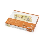 Kolorowe ścieżki, kulki oraz nadruki z liczbami i owocami motywują dzieci do poznawania kolorów i zabawnego liczenia.