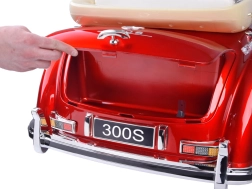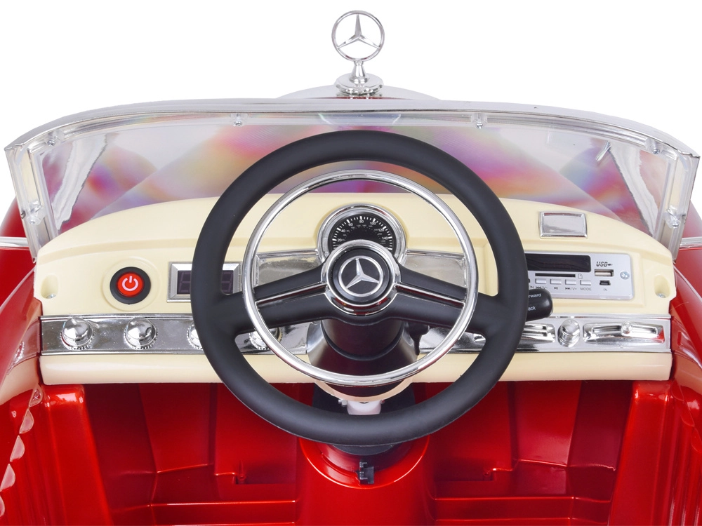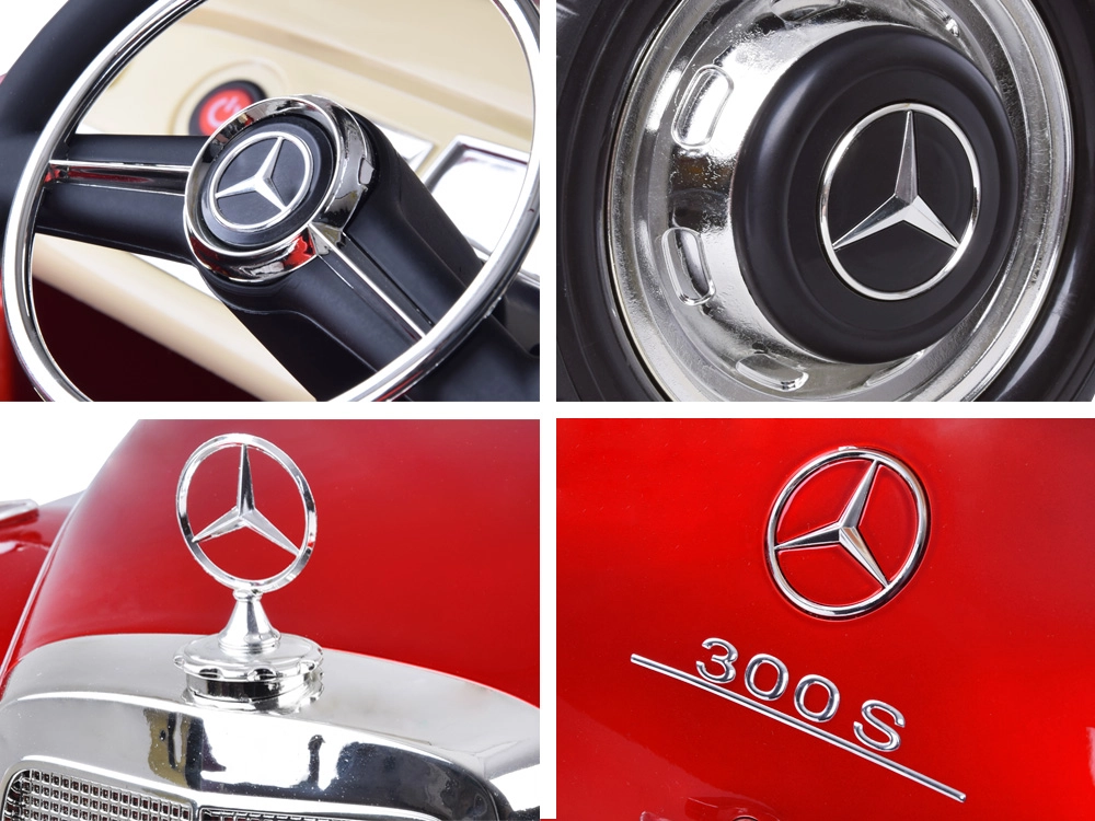 Panel multimedialny oferuje wejście USB oraz elementy sterujące na desce rozdzielczej. Praktyczny schowek w tylnej części pomieści drobiazgi na drogę. MERCEDES 300S to nie tylko piękna zabawka, ale także designerski dodatek do pokoju dziecięcego.