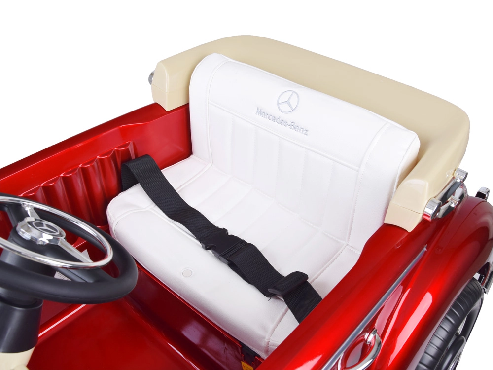 Ikoniczny wygląd klasycznego samochodu MERCEDES-BENZ w wersji dla dzieci spełni marzenie każdego małego kierowcy. Lakierowana karoseria z chromowanymi detalami, realistyczna osłona chłodnicy i funkcjonalne reflektory nadają autu wyjątkowy styl. Dzięki miękkim kołom EVA i przedniemu zawieszeniu sprężynowemu jazda jest komfortowa nawet na nierównym podłożu.