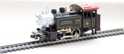 Ta elektryczna kolej w skali H0 (1:87) wiernie odwzorowuje prawdziwą parową lokomotywę, w tym szczegółowe podwozie i realistyczne napisy. Stabilność na łukach zapewnia dociążona lokomotywa i wysokiej jakości wózki jezdne. Dwa wagony towarowe z obrotowymi osiami gładko pokonują zakręty i pozwalają przewozić drobne ładunki.