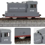 Ten elektryczny model pociągu towarowego wiernie odwzorowuje prawdziwą lokomotywę, włącznie z nadrukami SOUTHERN PACIFIC i detalicznymi elementami. Lokomotywa jest dodatkowo dociążona dla lepszej przyczepności i stabilności w łukach, wagony mają obrotowe osie dla płynnego pokonywania zakrętów, a łączenie jest łatwe dzięki hakom/złączkom.